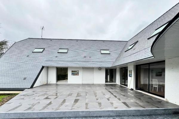 Pour cette magnifique maison, la société Nord Espace Conception, Spécialiste du Particulier depuis 2003, a réalisé cette superbe terrasse en dalles céramiques Black Slate de dimension 60x60x2, le matériau idéal pour vos terrasses!