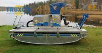 Chez Nord Espace Conception, entreprise de faucardage dans les Hauts-de-France, nous avons structuré notre activité pour répondre à des sujets écologiques concrets et aux affaires publiques ou privées liées à l’entretien des sites aquatiques. Le Truxor T50 est équipé d’outils interchangeables : couteaux de faucardage, pompe d’hydrocurage, grappins, râteaux et bennes polyvalentes.