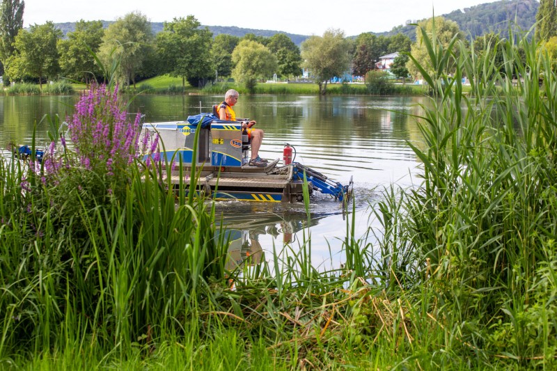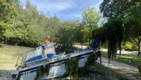 Cette modularité nous permet d’assurer différentes missions : découpe des plantes, extraction, désenvasement léger ou encore collecte des végétaux en surface. Cette technologie moderne ouvre la voie à des interventions précises, propres et efficaces, sans dégrader les berges ou perturber l’activité du canal ou du port.